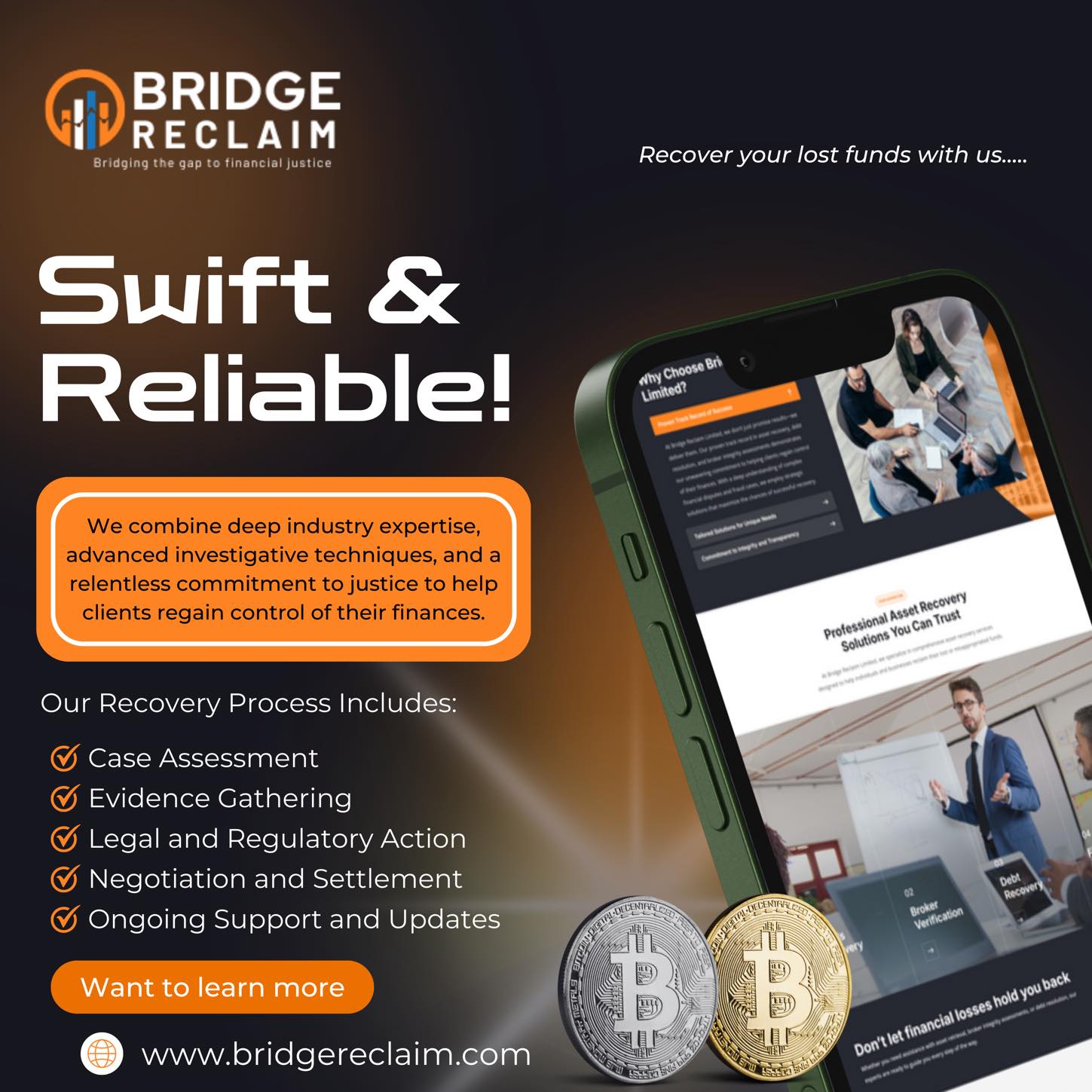 If you've been scammed,Reach out to BRIDGERECLAIM right away to start getting back your lost funds. They helped get 230,000$ I was scammed.They have a dedicated team ready to help you get your money back.